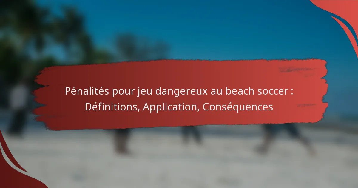 Les pénalités pour jeu dangereux dans le football de plage peuvent entraîner diverses conséquences pour les joueurs et les équipes. Ces pénalités sont appliquées pour garantir la sécurité des joueurs et maintenir le fair-play, entraînant souvent des actions disciplinaires pouvant affecter les matchs futurs.