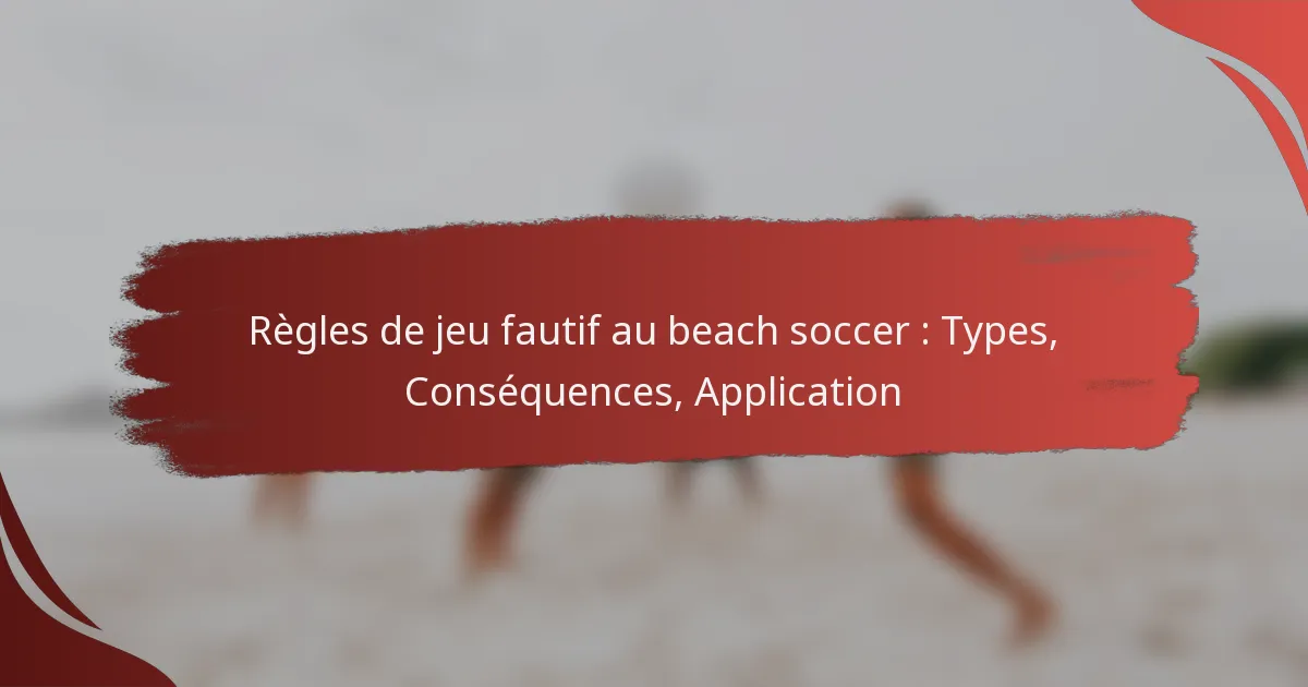 Les fautes de jeu au football de plage comprennent diverses infractions qui peuvent perturber le déroulement du jeu et entraîner des pénalités. Comprendre ces règles est essentiel pour les joueurs et les officiels afin d’assurer un jeu équitable et de maintenir l’esprit sportif sur le sable, car les violations peuvent entraîner des coups francs, des cartons jaunes et rouges, et même des suspensions de match. Les arbitres jouent un rôle crucial dans l’application de ces règles, garantissant l’intégrité et la sécurité du match.